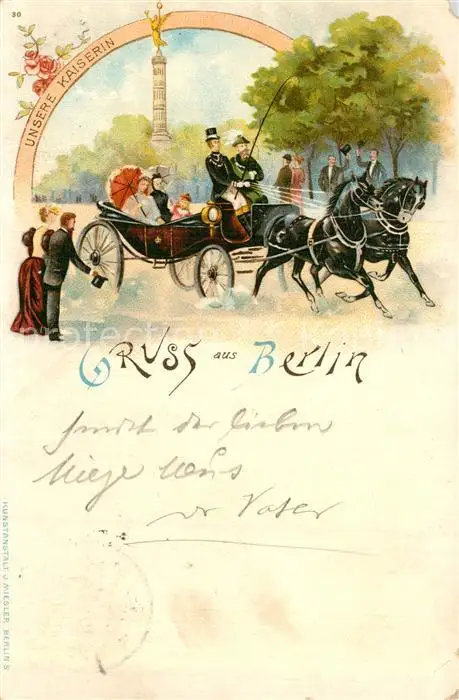 Berlin Kategorie Alte Ansichtskarten Postkarten bx80330 Berlin Kaiserin in der Kutsche Siegessaeule Berlin postalisch gelaufen 1899 Erhaltung siehe scans [KathaD81]