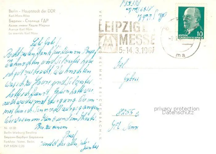 Berlin Karl Marx Allee Hauptstadt der DDR Berlin postalisch gelaufen 1967 Erhaltung siehe scans [FriedD77] Frierer