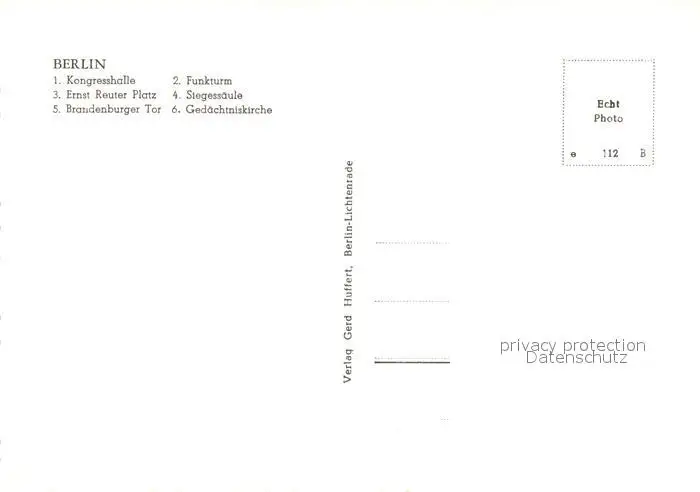 Berlin Kongresshalle Funkturm Siegessaeule Brandenburger Tor Gedaechtniskirche Berlin postalisch nicht gelaufen nach 1965 Erhaltung siehe scans [KathaD81] Kathoren