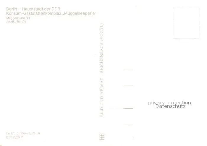 Berlin Konsum Gaststaette Mueggelseeperle Mueggelstube Jagdkeller Berlin postalisch nicht gelaufen nach 1965 Erhaltung siehe scans [WerneD78] WernPID7
