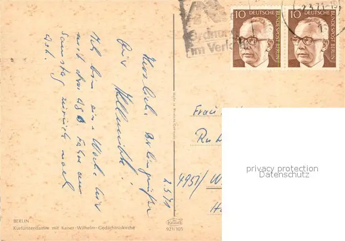Berlin Kurfuerstendamm Kaiser Wilhelm Gedaechtnis Kirche Berlin postalisch gelaufen 1971 Erhaltung siehe scans [KathaD81] Kathoren