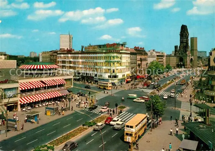 AK / Ansichtskarte Berlin Kurfuerstendamm mit alter und neuer Kaiser Wilhelm Gedaechtniskirche Berlin