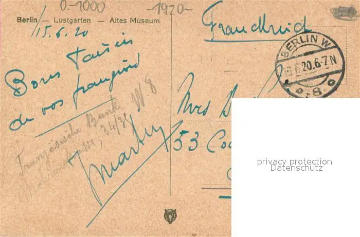 Berlin Lustgarten Altes Museum Berlin postalisch gelaufen 1920 Erhaltung siehe scans [FriedD77] Frierer