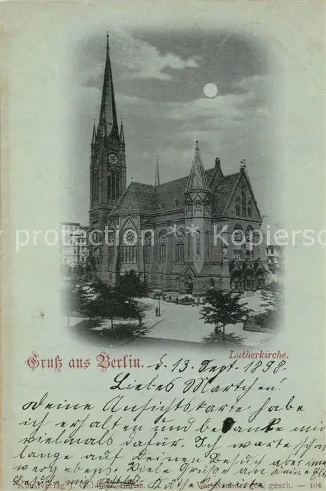 Berlin Lutherkirche Mondschein Berlin postalisch gelaufen 1898 Erhaltung siehe scans [KathaD81] Kathoren