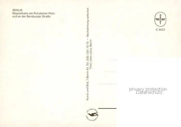 Berlin Magnetbahn am Potsdamer Platz Magnetbahnhof Bernburger Strasse Berlin postalisch nicht gelaufen nach 1965 Erhaltung siehe scans [WerneD78] WernPID7
