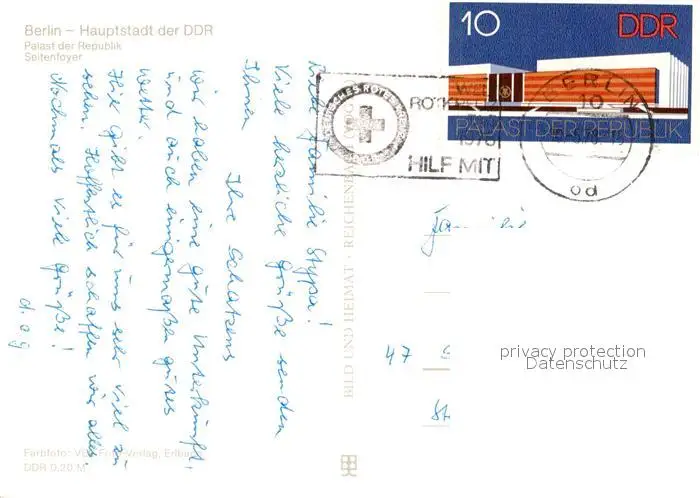 Berlin Palast der Republik Seitenfoyer Hauptstadt der DDR Berlin postalisch gelaufen 1978 Erhaltung siehe scans [FriedD77] Frierer