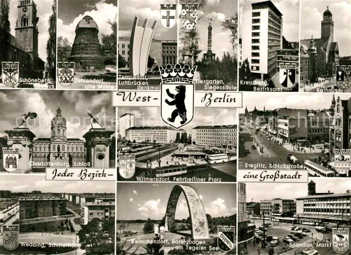AK / Ansichtskarte Berlin Schoeneberger Rathaus Alte Muehle Luftbrueckendenkmal Bezirksamt Neukoelln Rathaus Charlottenburger Schloss Fehrbelliner Platz Steglitz Schlossstr Wedding Schillerhoehe Borsigbogen am Tegeler See Spandau Markt Berlin