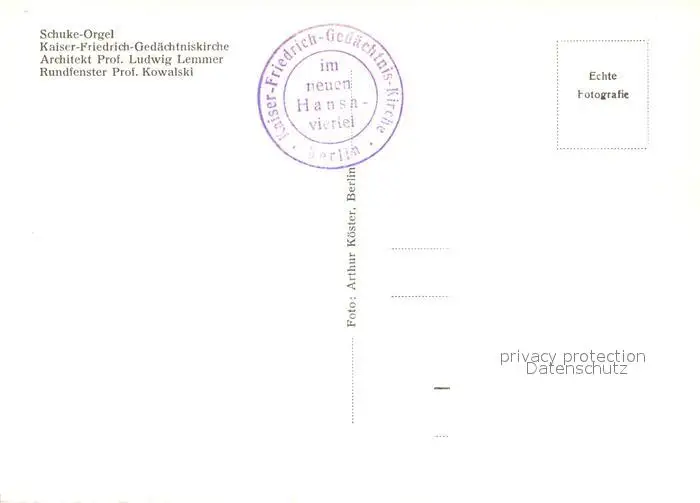 Berlin Schuke Orgel Kaiser Friedrich Gedaechtniskirche Architekt Prof. Lemmer Berlin postalisch nicht gelaufen nach 1965 Erhaltung siehe scans [FriedD77] Frierer
