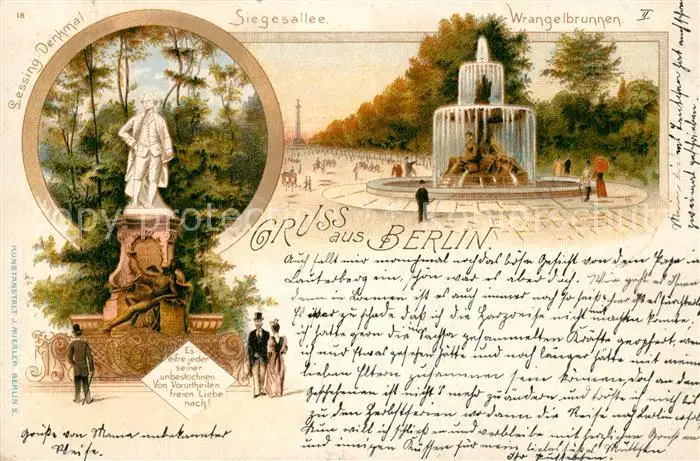 Berlin Kategorie Alte Ansichtskarten Postkarten bx80334 Berlin Siegesallee Wrangelbrunnen Lessing Denkmal Berlin postalisch gelaufen 1898 Erhaltung siehe scans [KathaD81]