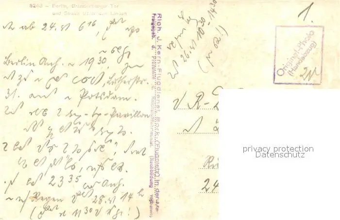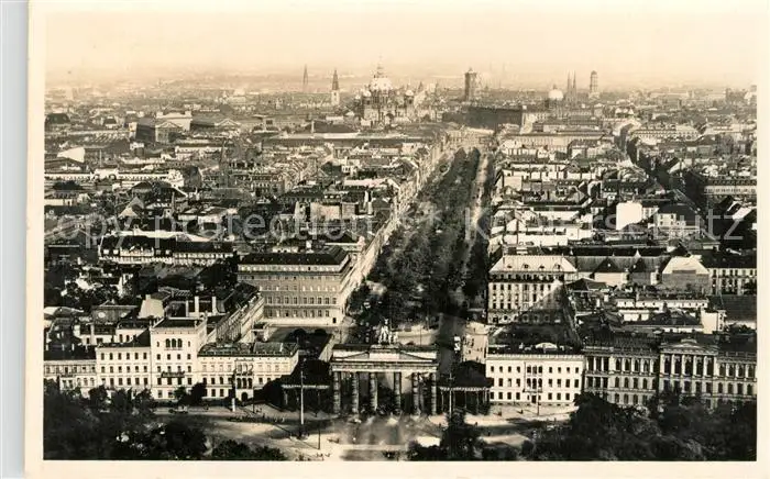Berlin Stadtpanorama Brandenburger Tor Strasse Unter den Linden Fliegeraufnahme Handabzug Berlin postalisch nicht gelaufen 1921-1965 Erhaltung siehe scans [FriedD77] Frierer