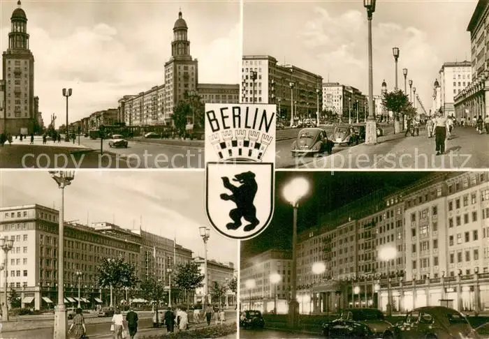 AK / Ansichtskarte Berlin Stalinalle bei Tag und bei Nacht Wappen Berlin