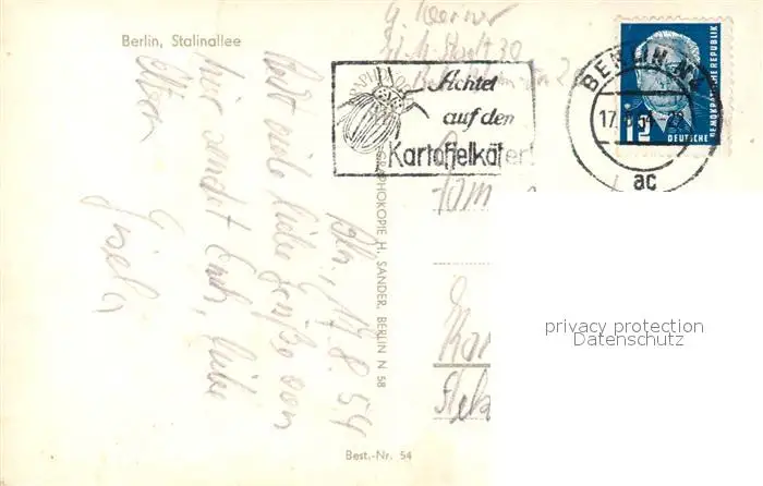 Berlin Stalinallee Berlin postalisch gelaufen 1954 Erhaltung siehe scans [WerneD78] WernPID7
