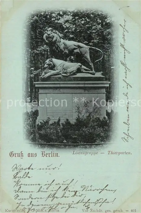 Berlin Tiergarten Loewengruppe Berlin postalisch gelaufen 1897 Erhaltung siehe scans [KathaD81] Kathoren