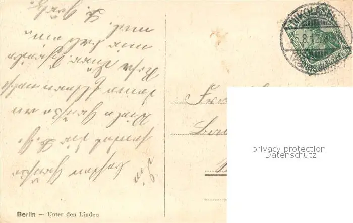 Berlin Unter den Linden Mittelpromenade Berlin postalisch gelaufen 1912 Erhaltung siehe scans [KathaD81] Kathoren