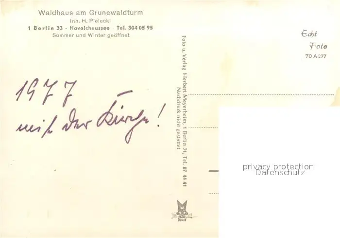 Berlin Waldhaus am Grunewaldturm Berlin postalisch nicht gelaufen 1977 Erhaltung siehe scans [KathaD81] Kathoren