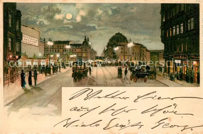 Berlin Kategorie Alte Ansichtskarten Postkarten bx80378 Berlin Weidendammbruecke Mondschein Berlin postalisch gelaufen 1901 Erhaltung siehe scans [KathaD81]