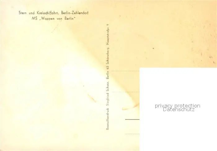 Berlin-Zehlendorf MS Wappen von Berlin Stern Kreisschiffahrt Berlin-Zehlendorf postalisch nicht gelaufen nach 1965 Erhaltung siehe scans [KathaD81] Kathoren