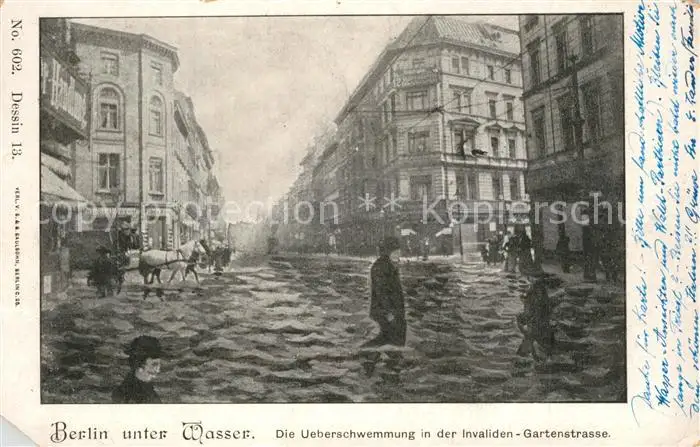 Berlin ueberschwemmung Invalidenstrasse Gartenstrasse Berlin postalisch gelaufen 1902 Erhaltung siehe scans [KathaD81] Kathoren