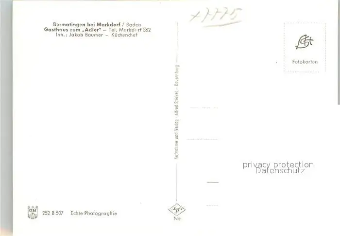 Bermatingen Gasthaus zum Adler Bermatingen postalisch nicht gelaufen 1921-1965 Erhaltung siehe scans [KathaD81] Kathoren