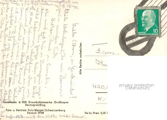 Bermsgruen Ferienheim der Braunkohlewerke Grosskayna Bermsgruen postalisch gelaufen 1966 Erhaltung siehe scans [LiesaD40] LiesID40