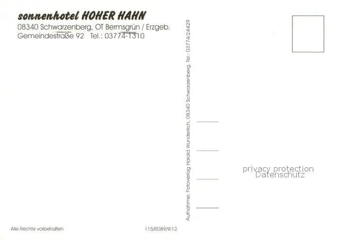 Bermsgruen Sonnenhotel Hoher Hahn Winter im Erzgebirge Bermsgruen postalisch nicht gelaufen nach 1965 Erhaltung siehe scans [FriedD77] Frierer