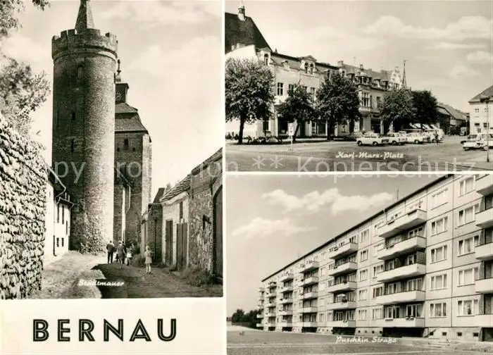 AK / Ansichtskarte Bernau_Berlin Karl Marx Platz Puschkin Strasse Stadtmauer Bernau Berlin