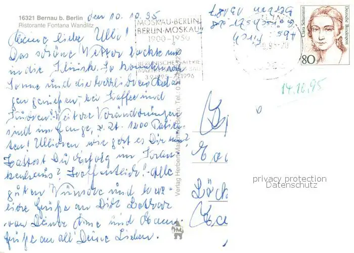 Bernau_Berlin Ristorante Fontana Wandlitz Bernau Berlin postalisch gelaufen 1995 Erhaltung siehe scans [FriedD77] Frierer