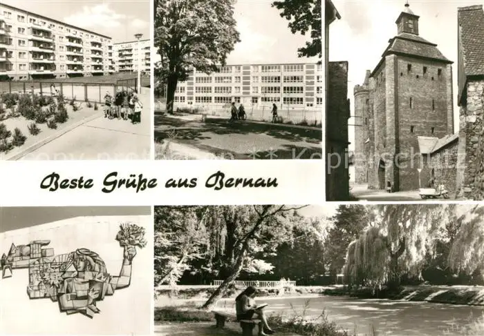 AK / Ansichtskarte Bernau_Berlin Wohnsiedlung Altstadt Stadtmauer Hungerturm Partie am Wasser Parkanlagen Bernau Berlin