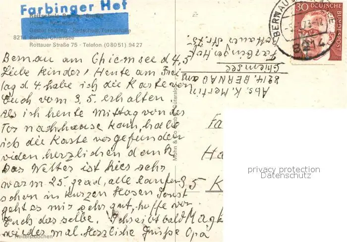 Bernau_Chiemsee Hotel Farbinger Hof Bernau Chiemsee postalisch gelaufen 1973 Erhaltung siehe scans [WerneD78] WernPID7