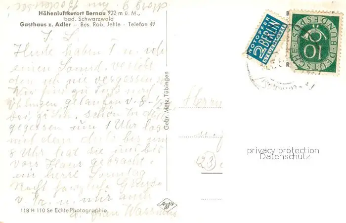 Bernau Schwarzwald Kategorie Alte Ansichtskarten Postkarten bx93678 Bernau_Schwarzwald Gasthaus zum Adler Bernau Schwarzwald postalisch gelaufen Erhaltung siehe scans [WerneD78]