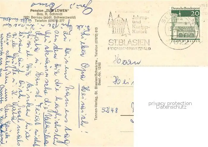 Bernau Schwarzwald Kategorie Alte Ansichtskarten Postkarten bx55704 Bernau_Schwarzwald Pension Zum Loewen Bernau Schwarzwald postalisch gelaufen nach 1965 Erhaltung siehe scans [NatalD47]