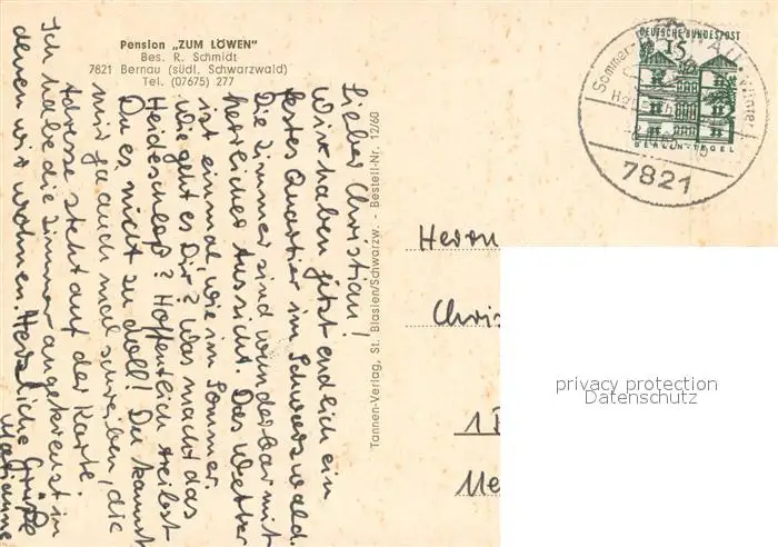 Bernau_Schwarzwald Pension zum Loewen Panorama Bernau Schwarzwald postalisch gelaufen 1921-1965 Erhaltung siehe scans [WerneD78] WernPID7