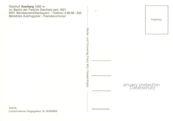 Bernbeuren Gasthof Auerberg Fliegeraufnahme Bernbeuren postalisch nicht gelaufen nach 1965 Erhaltung siehe scans [PaolaD17] PaolPID1