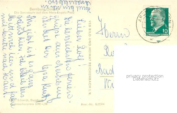 Bernburg_Saale Sonnenuhr a. d. Marx-Engels-Platz Bernburg_Saale postalisch gelaufen 1962 Erhaltung siehe scans [LiesaD40] LiesID40