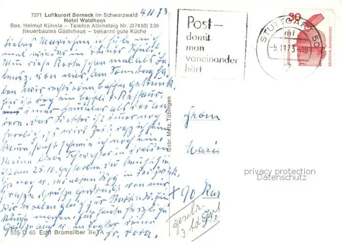 Berneck_Altensteig Gasthof Waldhorn Gaststube Panorama Details Berneck_Altensteig postalisch gelaufen 1973 Erhaltung siehe scans [WerneD78] WernPID7