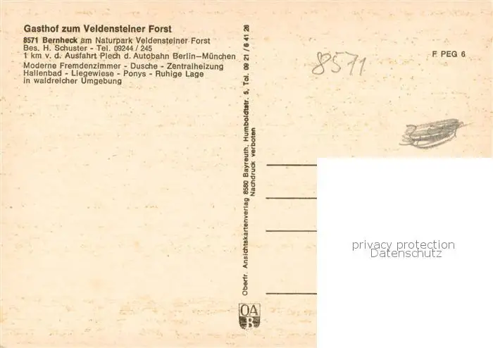Bernheck Gasthof zum Veldensteiner Forst Hallenbad Liegewiese Bernheck postalisch nicht gelaufen nach 1965 Erhaltung siehe scans [LiesaD40] LiesID40