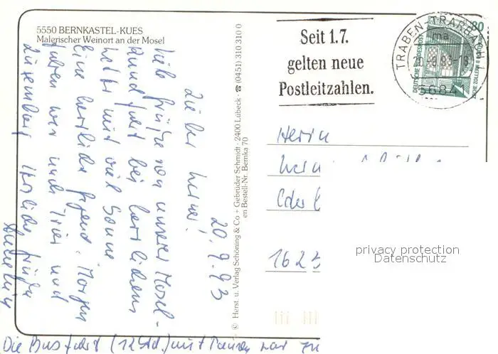 Bernkastel-Kues Malerischer Weinort an der Mosel Bernkastel-Kues postalisch gelaufen 1993 Erhaltung siehe scans [FriedD77] Frierer