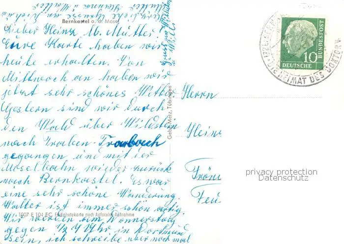 Bernkastel-Kues_Berncastel Moselpartie mit Kirche und Bruecke postalisch nicht gelaufen nach 1965 Erhaltung siehe scans [FriedD77] Frierer