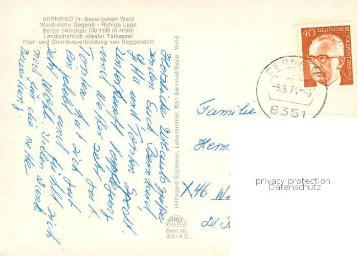 Bernried Niederbayern Kategorie Alte Ansichtskarten Postkarten bx87696 Bernried_Niederbayern Bernried Niederbayern postalisch gelaufen 1974 Erhaltung siehe scans [LiesaD40]
