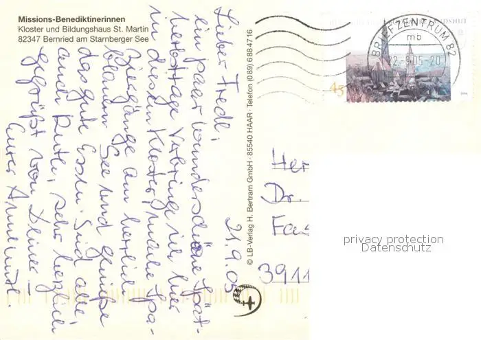 Bernried_Starnberger_See Fliegeraufnahme Kloster Missions-Benediktinerinnen Bernried_Starnberger_See postalisch gelaufen 2005 Erhaltung siehe scans [LiesaD40] LiesID40