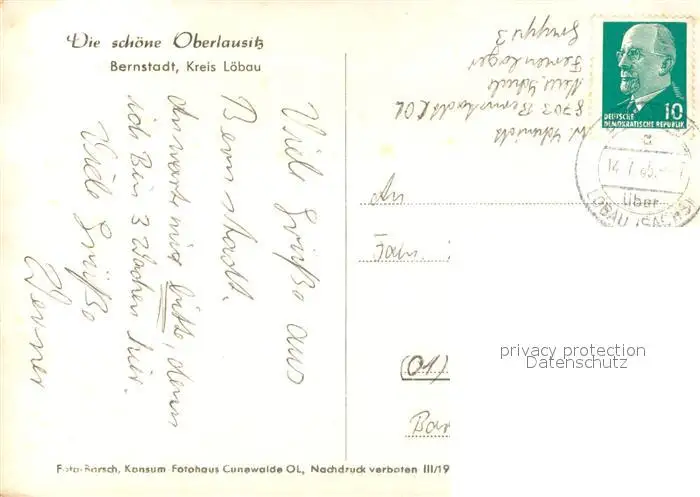 Bernstadt_Loebau Kirche Marktplatz Freibad Bernstadt_Loebau postalisch gelaufen 1965 Erhaltung siehe scans [WerneD78] WernPID7