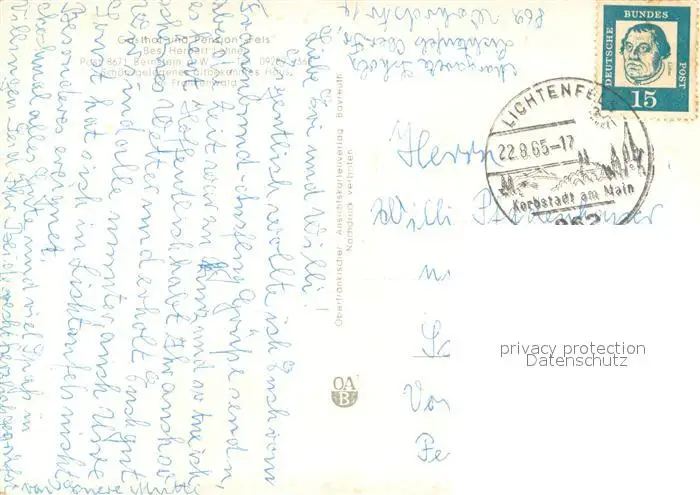 Bernstein_Wald Gasthof Pension Fels Panorama Bernstein_Wald postalisch gelaufen 1965 Erhaltung siehe scans [WerneD78] WernPID7