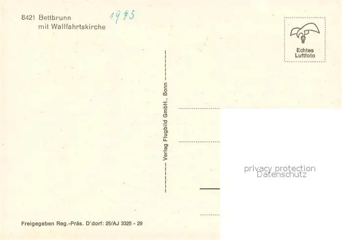 Bettbrunn Ortsansicht mit Wallfahrtskirche Fliegeraufnahme Bettbrunn postalisch nicht gelaufen nach 1965 Erhaltung siehe scans [FriedD77] Frierer