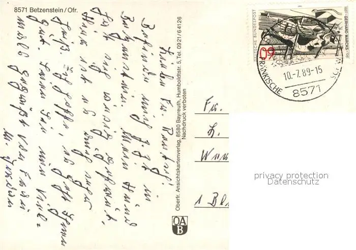 Betzenstein Panorama Betzenstein postalisch gelaufen 1989 Erhaltung siehe scans [WerneD78] WernPID7