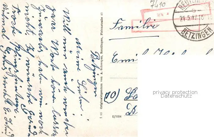 Betzingen Teilansicht m. Kirche Betzingen postalisch gelaufen 1947 Erhaltung siehe scans [LiesaD40] LiesID40