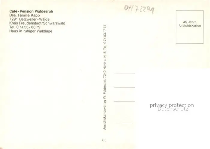 Betzweiler-Waelde Café Pension Waldesruh See Panorama Schwarzwald Betzweiler-Waelde postalisch nicht gelaufen nach 1965 Erhaltung siehe scans [FriedD77] Frierer
