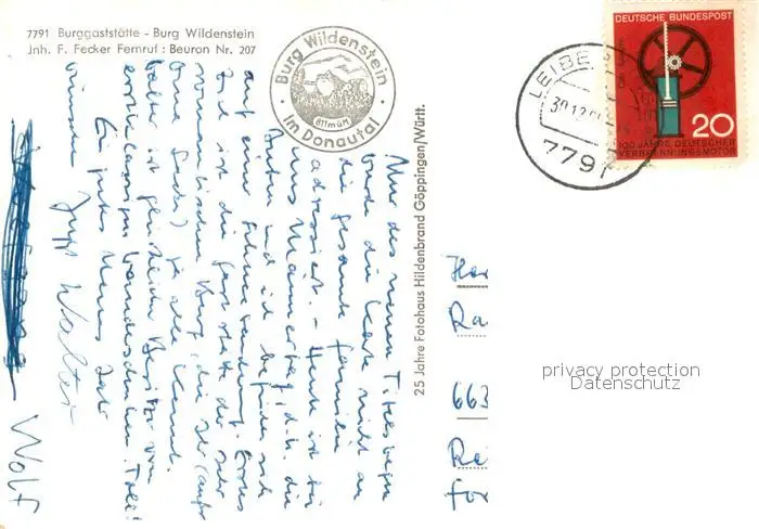 Beuron_Donautal Burggaststaette Burg Wildenstein Fliegeraufnahme Beuron Donautal postalisch gelaufen nach 1965 Erhaltung siehe scans [FriedD77] Frierer