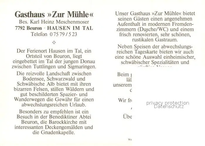 Beuron_Donautal Gasthaus zur Muehle Gaststube Beuron Donautal postalisch nicht gelaufen nach 1965 Erhaltung siehe scans [WerneD78] WernPID7