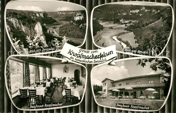 Beuron_Donautal Landschaftspanorama Donautal Berghaus Knopfmacher Restaurant Terrasse Knopfmacherfelsen Beuron Donautal postalisch nicht gelaufen nach 1965 Erhaltung siehe scans [FriedD77] Frierer