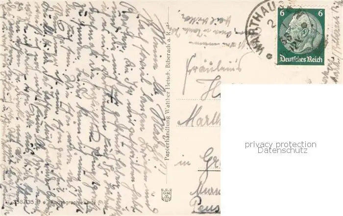 Biberach_Riss Ansicht vom Waldrand aus Biberach Riss postalisch gelaufen 1933 Erhaltung siehe scans [FriedD77] Frierer